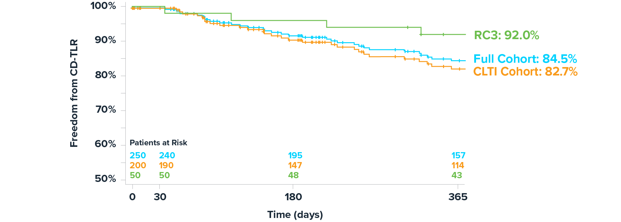 Freedom from CD-TLR analysis excluded patients with above the ankle amputation of target limb.