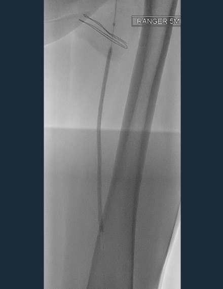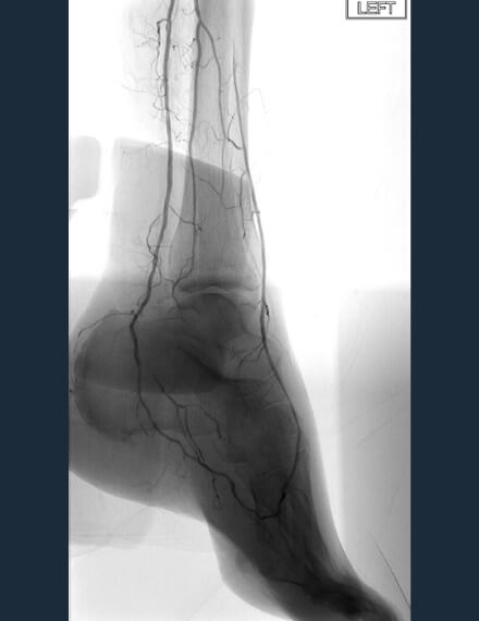 This case, courtesy of Dr. Ashish Patel from St Thomas’, London, features a 71-year-old female patient, a smoker with hypertension Rutherford category 5 peripheral artery disease (PAD). The patient presents left hallux gangrene and severe rest pain and had no previous treatments.