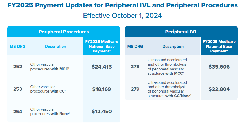 Fiscal Year 2025 (FY2025) Medicare Inpatient Prospective Payment System (IPPS) final rule increases payments for hospital inpatient Coronary and Peripheral IVL procedures